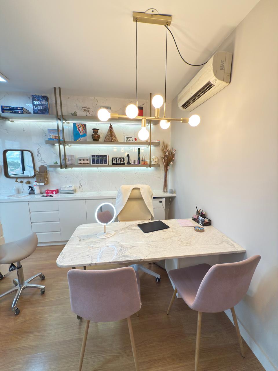 Em meu consultório-ateliê, cada detalhe é pensado para acolher você com calma, conforto e privacidade. Um espaço elegante, feito para desacelerar, porque Slow Beauty começa no ambiente.