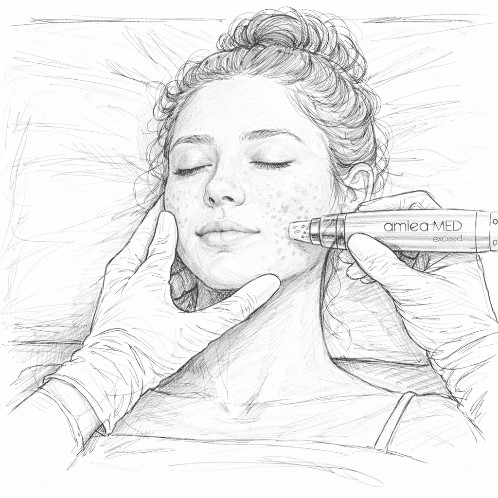 Com a Amiea Med Exceed, não é só microagulhar. Essa máquina de nanoagulhamento robótico possui tecnologia ultrarrápida, reduzindo significamente o desconforto, sendo praticamente indolor quando comparada aos microagulhamentos tradicionais.